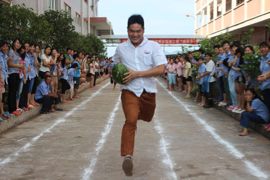 第一場(chǎng)接力賽;接力賽4人一組舉行(2男2女),共16組,每組參賽人員站在各自跑道,每個(gè)跑道存放一個(gè)西瓜(大小均勻西瓜),聽(tīng)到裁判員發(fā)出“各就各位”口令后,參賽人員蹲下身抱起西瓜,當(dāng)裁判員鳴哨后,參賽人員即可起動(dòng),抱起西瓜,沿著跑道向前方傳遞西瓜,這樣依此前進(jìn)來(lái)回,直至最后一位參賽選手越過(guò)終點(diǎn)線為勝組。